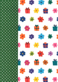 ギフトボックス柄と花柄でデザインされた色鮮やかなリバーシブルラッピングペーパー(包装紙)。厚手の用紙なのでブックカバーにも活用できる。