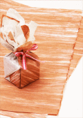 手漉きの和紙なので端に不揃いの繊維(みみ)があります。絞り染めしてあるので、しなやかな手触りです。染めのない楮紙などの合わせて使用すると、洋紙や不織布などでは表現できないナチュラル感が出ます。プチギフトや小箱入りのお菓子などを包んでみるのも楽しそう。