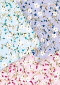 白い小花が全体に広がる上品な包装紙。全3色。包装紙のカラーは写真より少し薄い色で発色が悪くなっています。申し訳ございません。