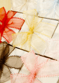 透明感のあるオーガンジーリボンの縁に小さなループが付いたワイド幅の高級リボン。