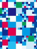8色の大小の四角いスクエア形が目を引く包装紙です。ディスプレーの中心的な物に使ってみても良さそう。