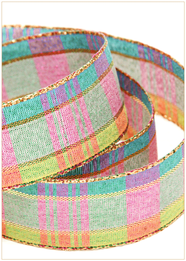 ブリリアントチエックリボン・ピンク &グリーン・5m