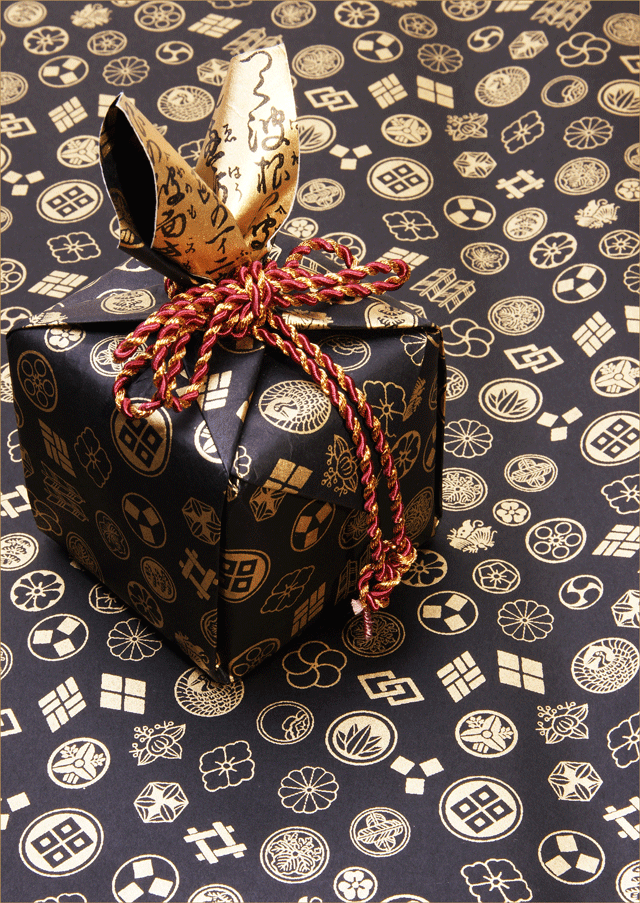 和紙/友禅紙/家紋柄(黒地)/モダン和風ラッピング講習使用和紙/半裁サイズ