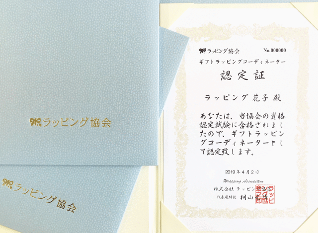 ギフトラッピングコーディネーター資格が認定されます。合格率は100%です。