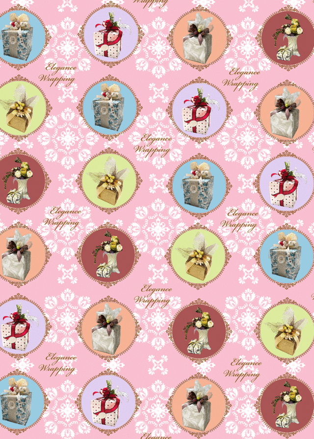 エレガンス・シック・ピンク/優雅さが映える白い柄とラッピング作品柄・3枚セット:包装紙