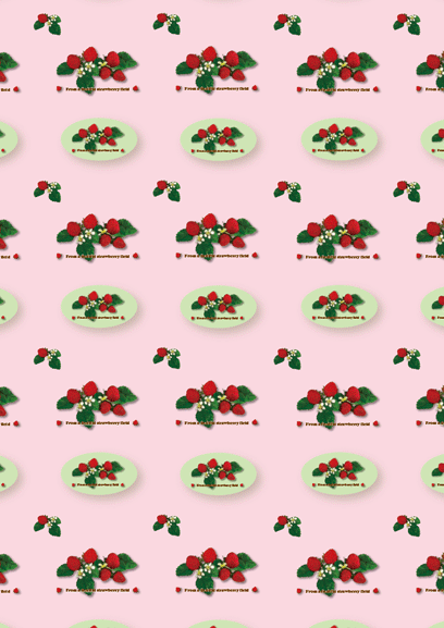 北欧風ストロベリー柄|ラッピングペーパー(包装紙)・ハーフサイズ・2枚セット