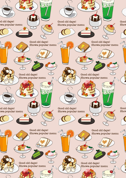昭和の喫茶メニュー柄|ラッピングペーパー(包装紙)・ハーフサイズ・2枚セット